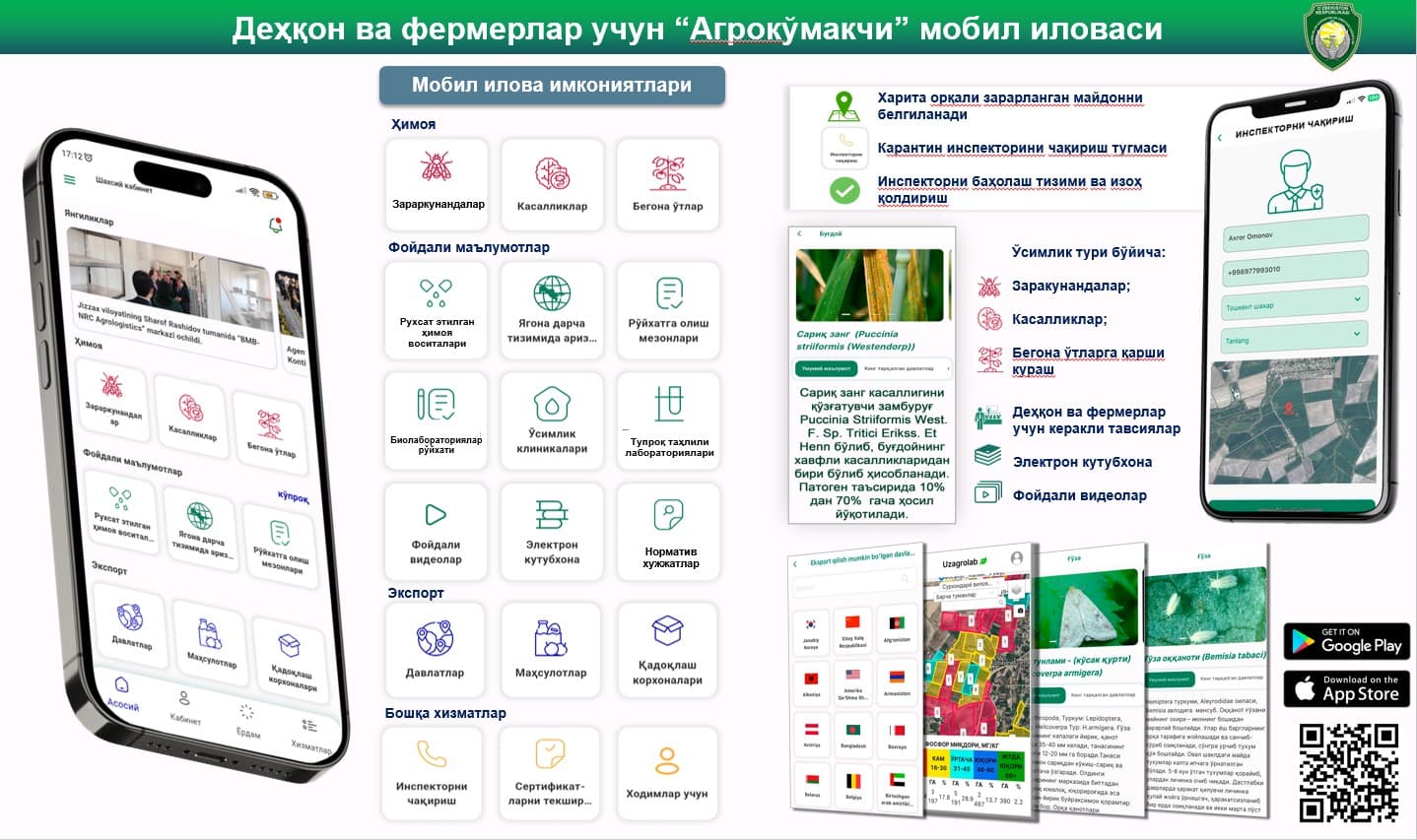 Fermerlar va jamoatchilik uchun mobil ilovalar yaratish, ularga o'simliklar karantini, zararkunandalar, kasalliklar va fitosanitariya talablarining yangiliklari haqida ma'lumotlarni yuborish, onlayn maslahatlar va xizmatlar ko'rsatish.